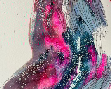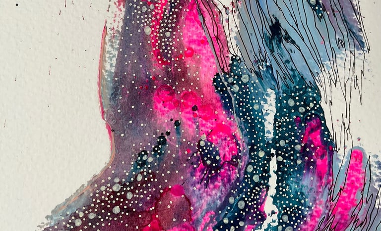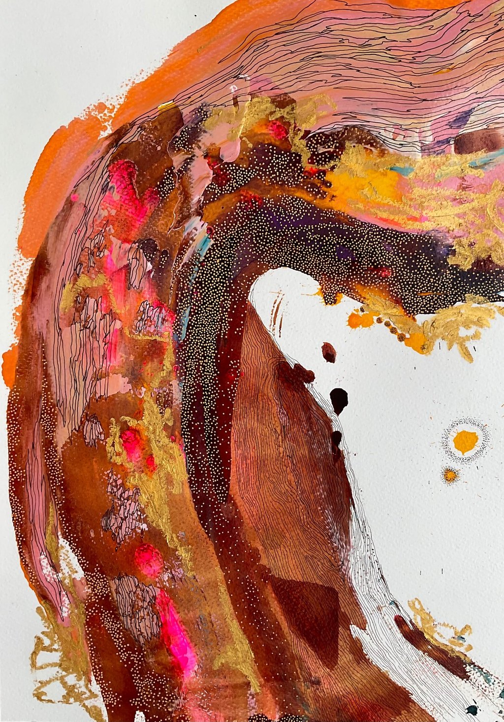 In a similar way, my work is currently exploring womanhood and the inner emotional world of being a woman. I reflect on what it felt like growing up as a girl, moving through my twenties and now thirties, and the things we’re told—both directly and indirectly—about who we should be. A lot of my work comes from my own memories and feelings, using marks, forms and colours to evoke emotion, both for myself and for the viewer. It’s an ongoing process of self-discovery, and something I’m still exploring and understanding through my practice.